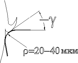 Рис. 21 Геометрия резания при толщине среза, сопоставимым с величиной радиуса округления.